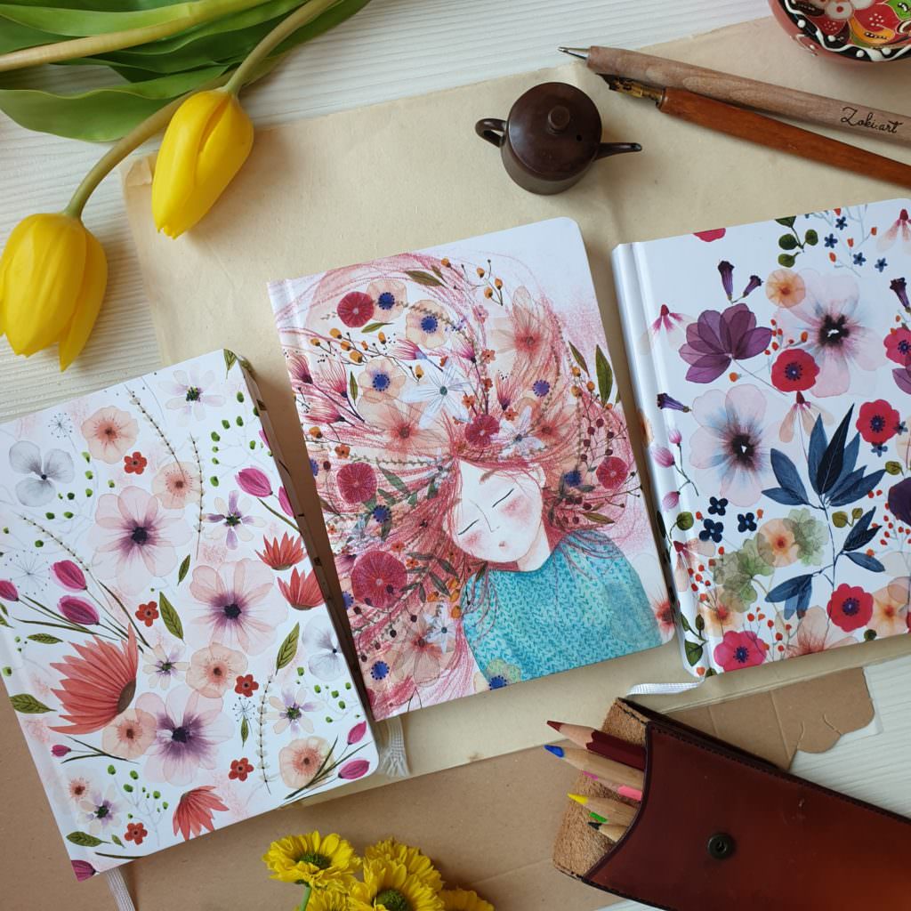 Motive sem natisnila na beležke s trdo vezavo. Odločila sem se, da notranjost pustim prazno, saj vam tako pustim prostor za vašo ustvarjalnost. Beležko lahko dejansko uporabite kot zvezek, dnevnik, majhen zapisovalnik receptov ali celo kot skicirko.