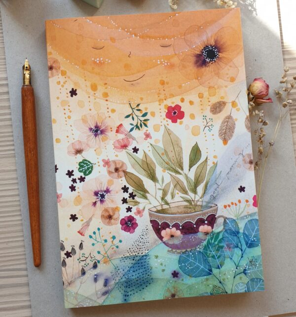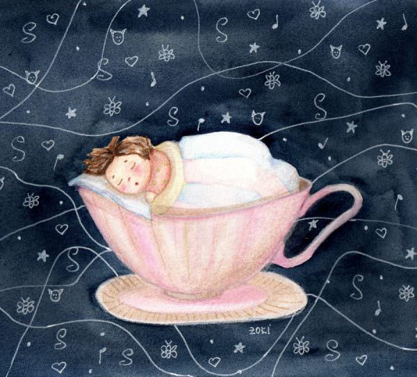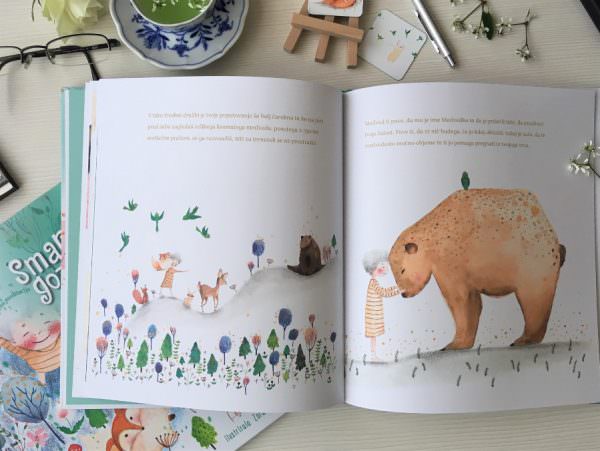 Želiš stran od teh tečnih, nejevoljnih in utrujenih misli. Greva! Te peljem na oblaku v svet domišljije. Med stolpnice, ki niso sive in kovinaste, kot ploščica v kolenu sosedove Minke. Moje so pisane in razigrane in znajo žvrgoleti. V njih raste velikansko cvetje in vedno lepo diši. Vsaj za trenutek, zbeživa v pravljco.