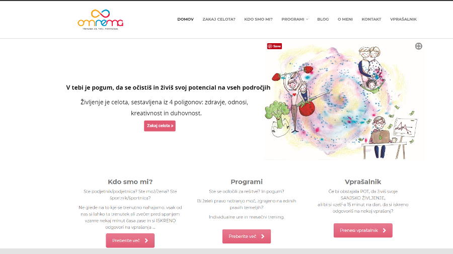 I have already worked with Petra Šuštar on the Emerald Forest picture book but we will surely work together again in the future. She asked me to do a few graphics for her web site and marketing campaigns. Since she also practices yoga, organises various workshops for women, teaches meditation, and keeps the young ones active with activities as well, we decided to improve her web site visually with 4 illustrations which resemble those in Emerald Forest and will therefore make sure Petra’s site will be more recognisable.