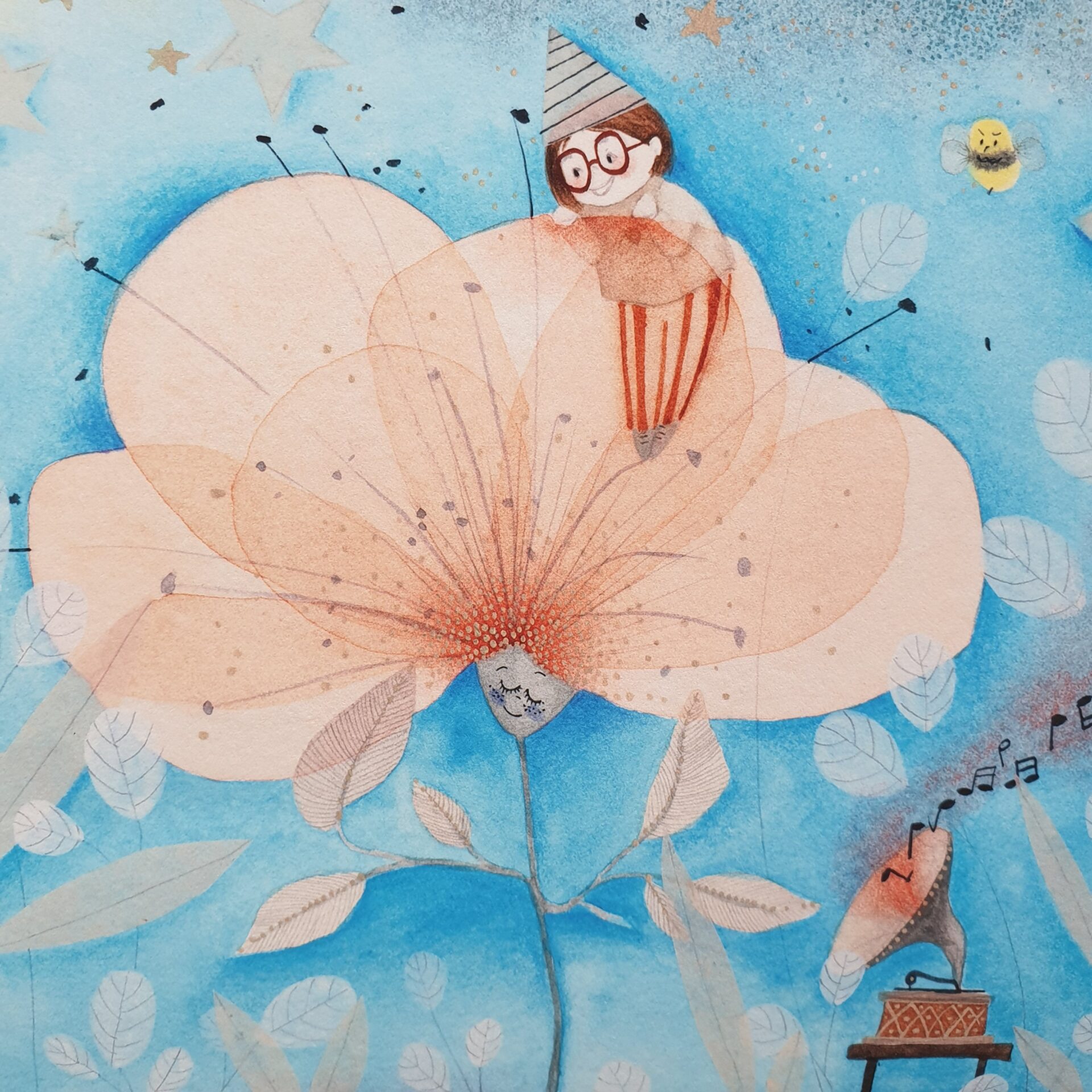 The giclee print is 200×200 mm in size and it is printed on high-quality professional art paper. It is signed on the back.