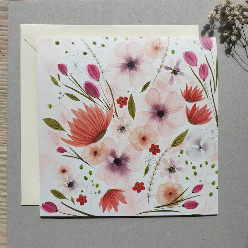 This beautiful greeting card is professionally printed in Slovenia on thick 300 g recycled paper and in size 150×150 mm. Inside is blank. It is packed in a plastic sleeve and comes with an envelope.