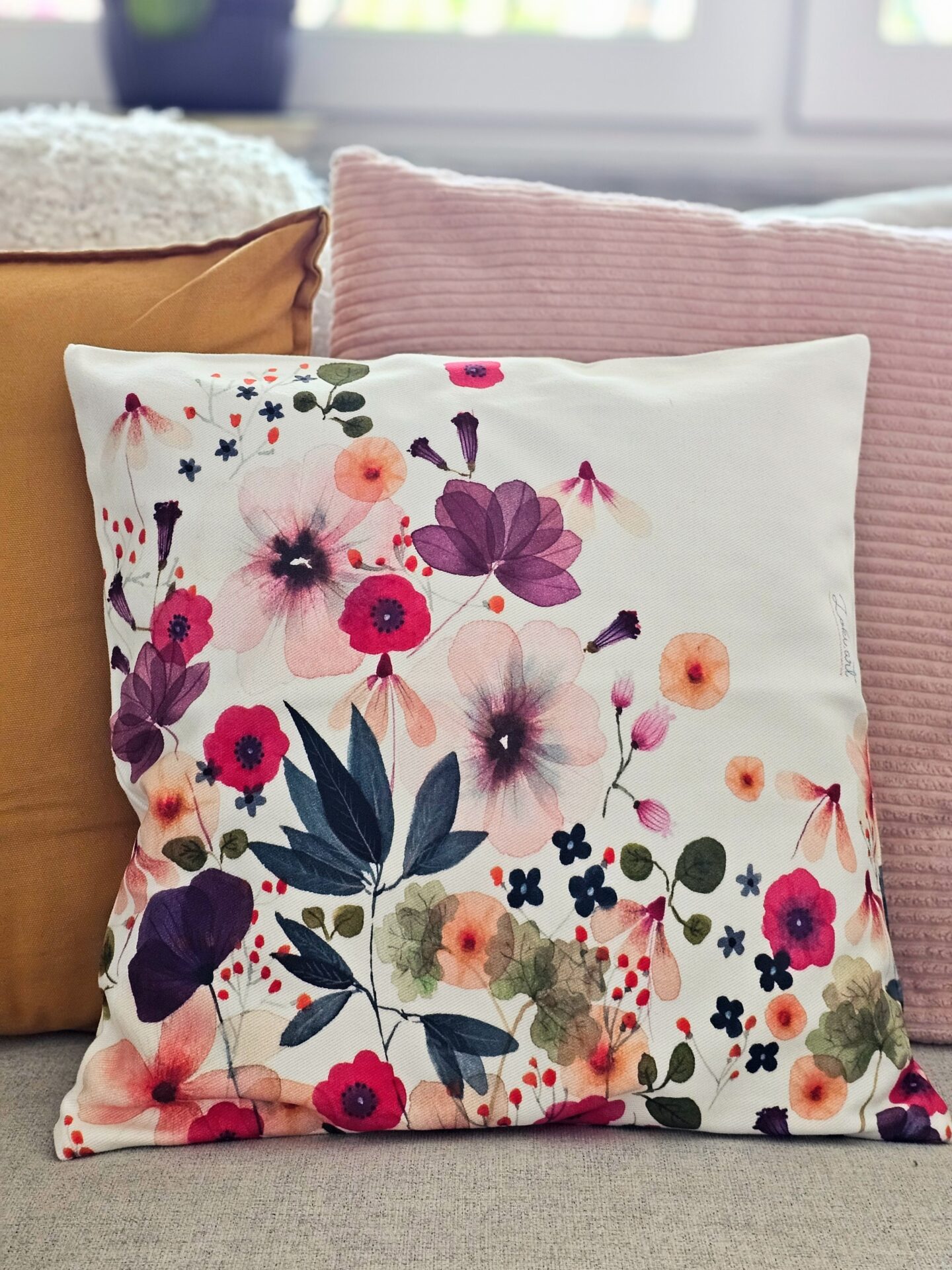 Dekorativna prevleka za blazino je tiskana na izredno kvalitetno bombažno platno in je pralna v pralnem stroju na 30 stopinj C. Velikost posamične prevleke je 40×40 cm. Dekorativna prevleka pride brez polnila.