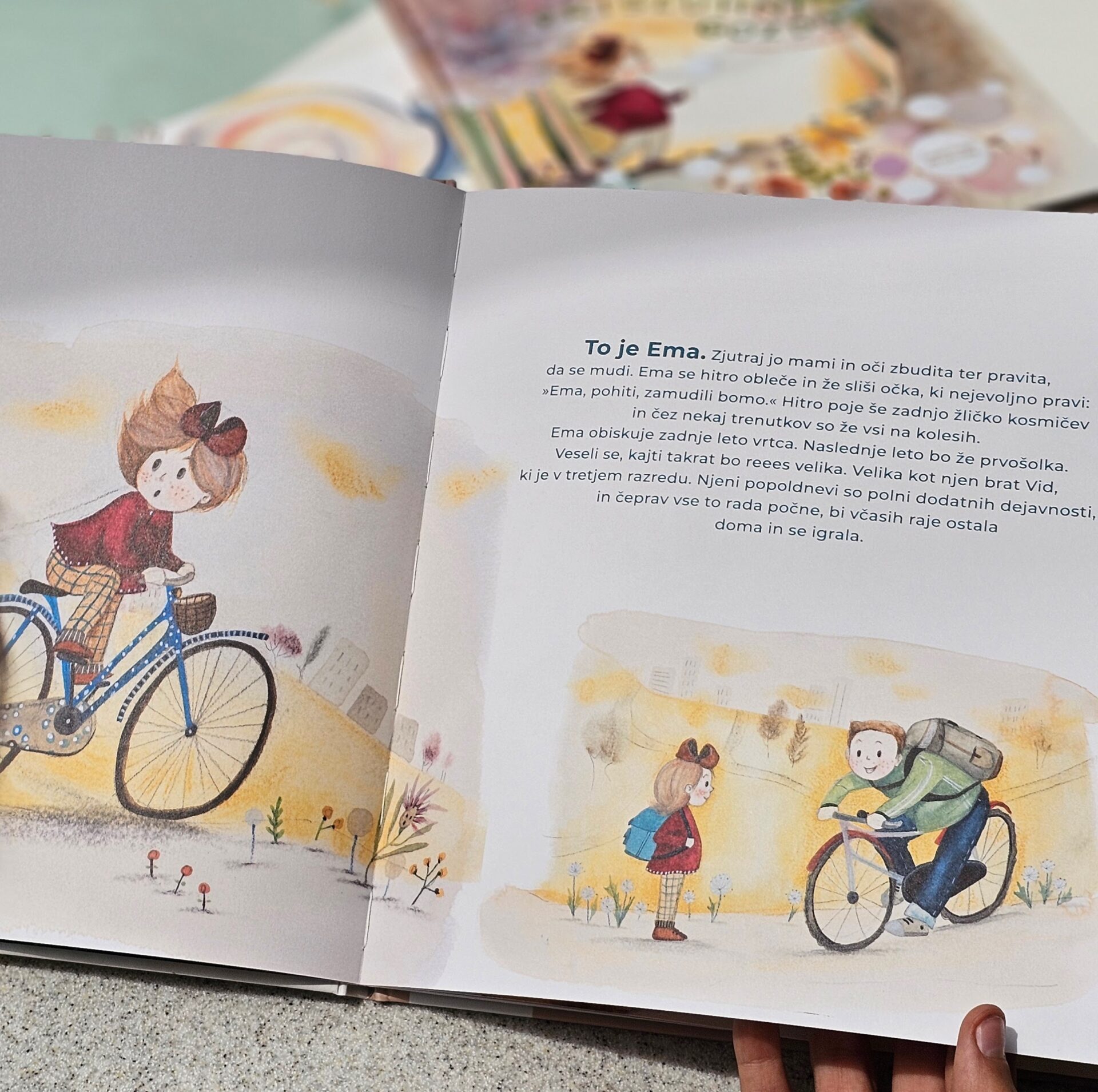 PRISLUHNI GOZDU je interaktivna slikanica, ki je namenjena ohranjanju in krepitvi čuječnosti pri otrocih. Njena glavna junakinja EMA. popelje nas skozi štiri zgodbe, ki se dogajajo v štirih letnih časih. Slikanico lahko prebiramo kot celoto, saj se med seboj povezujejo, ali posamično, ker ima vsaka zgodba tudi svoje sporočilo. V njej najdeš tudi kode s povezavo do Youtube vodenih meditacij.