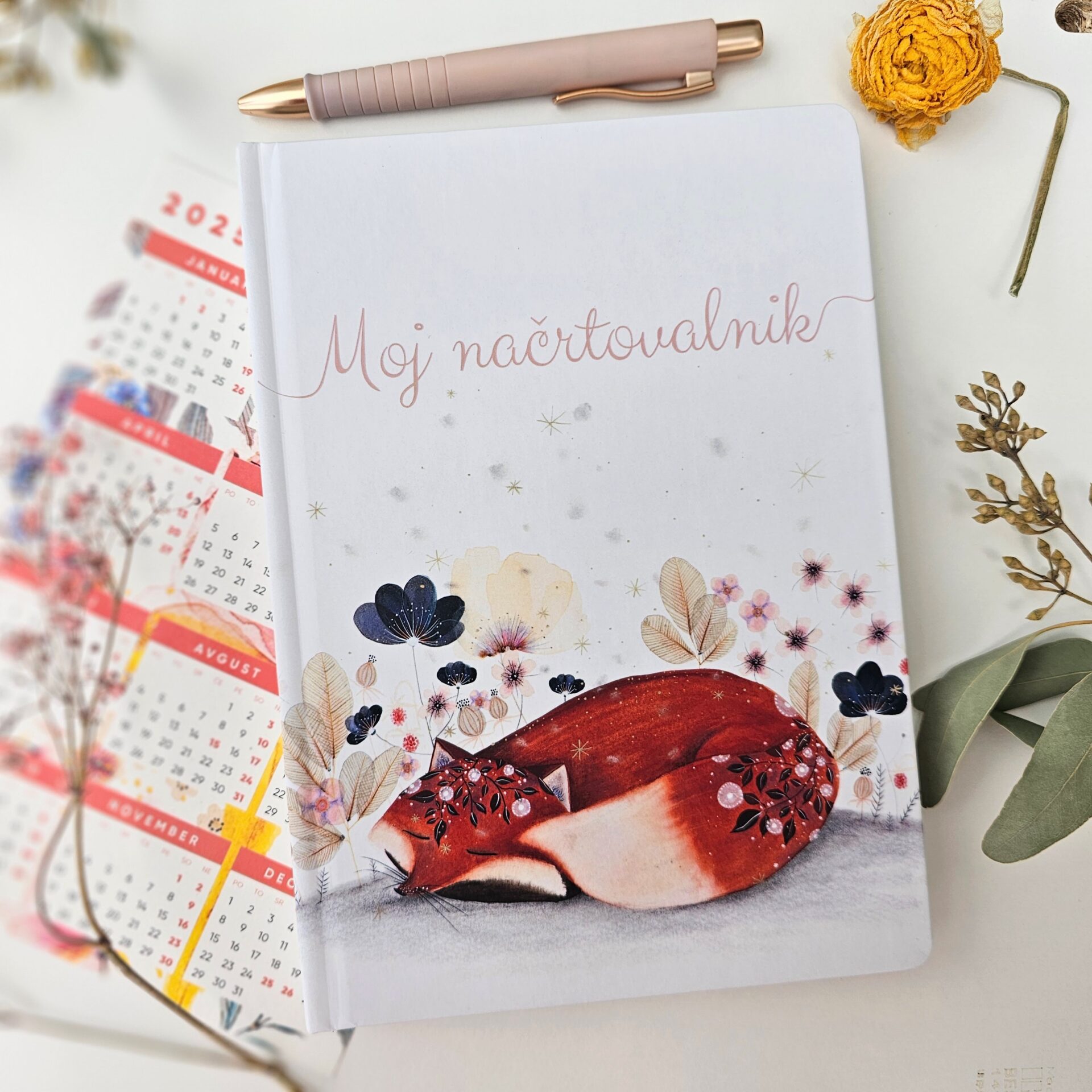 Rokovnik ”Lisička” je velikosti A5 in ima trde platnice. Prevlečen je s soft-touch folijo, da ne poškoduje tvojih finih prstnih blazinic. Ne, res je zelo prijeten za prijet. Obljubim. Vezava je šivana. Notranjost rokovnika je brez datumov. Tako ne boš pod pritiskom, da bi ga morala popisati v omejenem časovnem obdobju. Lahko ga začneš uporabljati kadarkoli med letom. Kljub temu ima priložen ločen koledarček za leto 2024 in 2025, če bi se slučajno izgubila v času. Tiskan in oblikovan je v celoti v Sloveniji.
