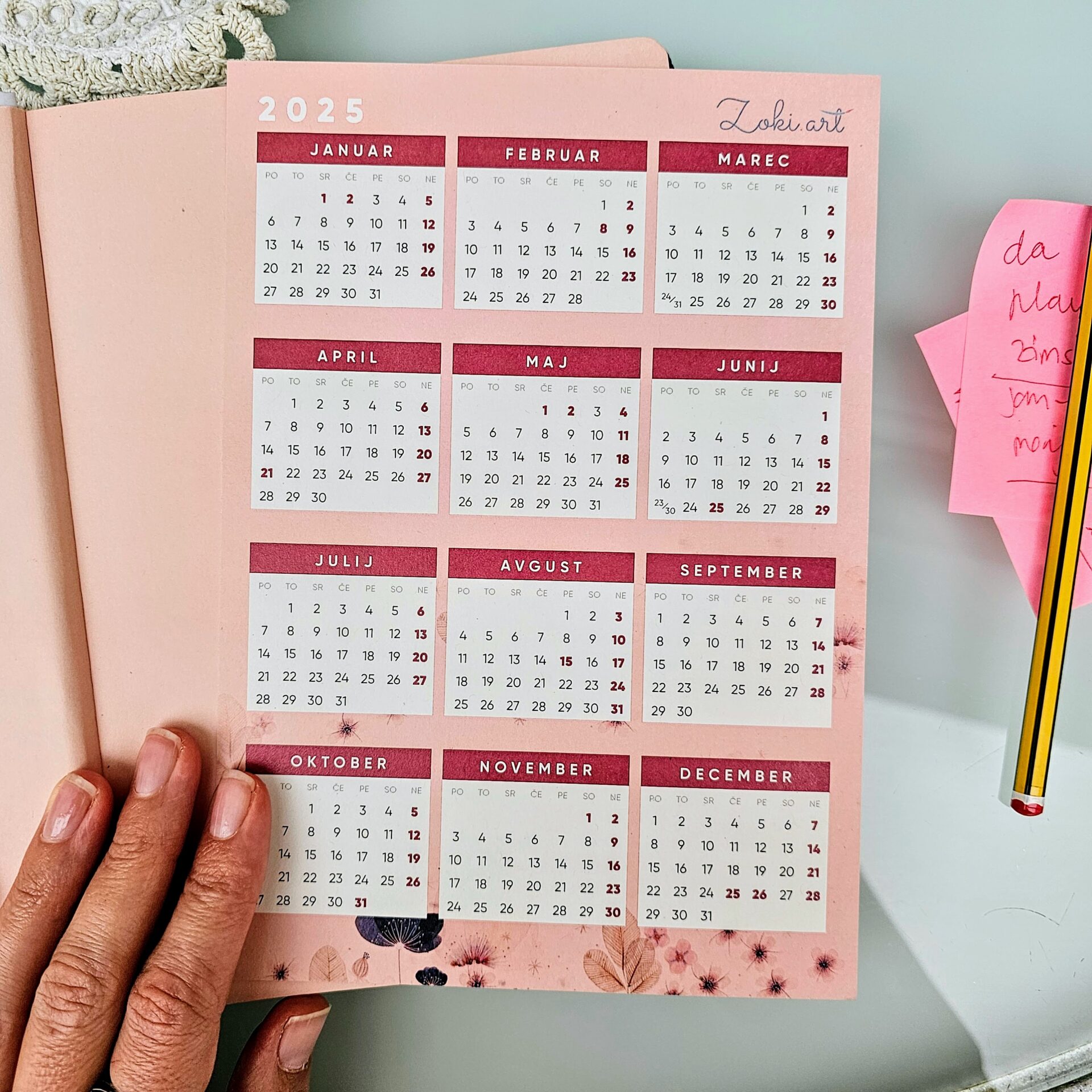 - Ločen kartonček s koledarjem za 2024 in 2025