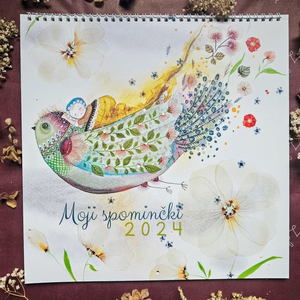 Tko, kot sem lani obljubljala, sta za 2024 izšli dve verziji koledarja. Stenski in namizni. Seveda sta obe verziji oblikovno delo moje drage Darjadizajn.