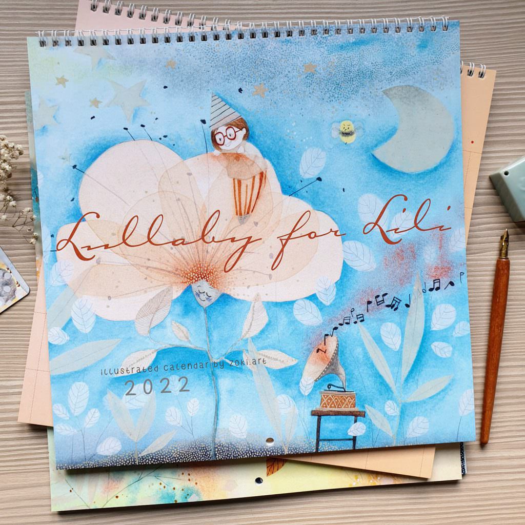 Ilustrirani stenski koledar 2022 ”Uspavanka za Lili” je pravljica, ki vas popelje na čudovito in vznemirljivo potovanje skozi vsak mesec leta 2022 v družbi deklice Lili. Pripravite se, saj bo leto 2022 polno sanjskih krajev, dobre glasbe in čudovitih bitij.